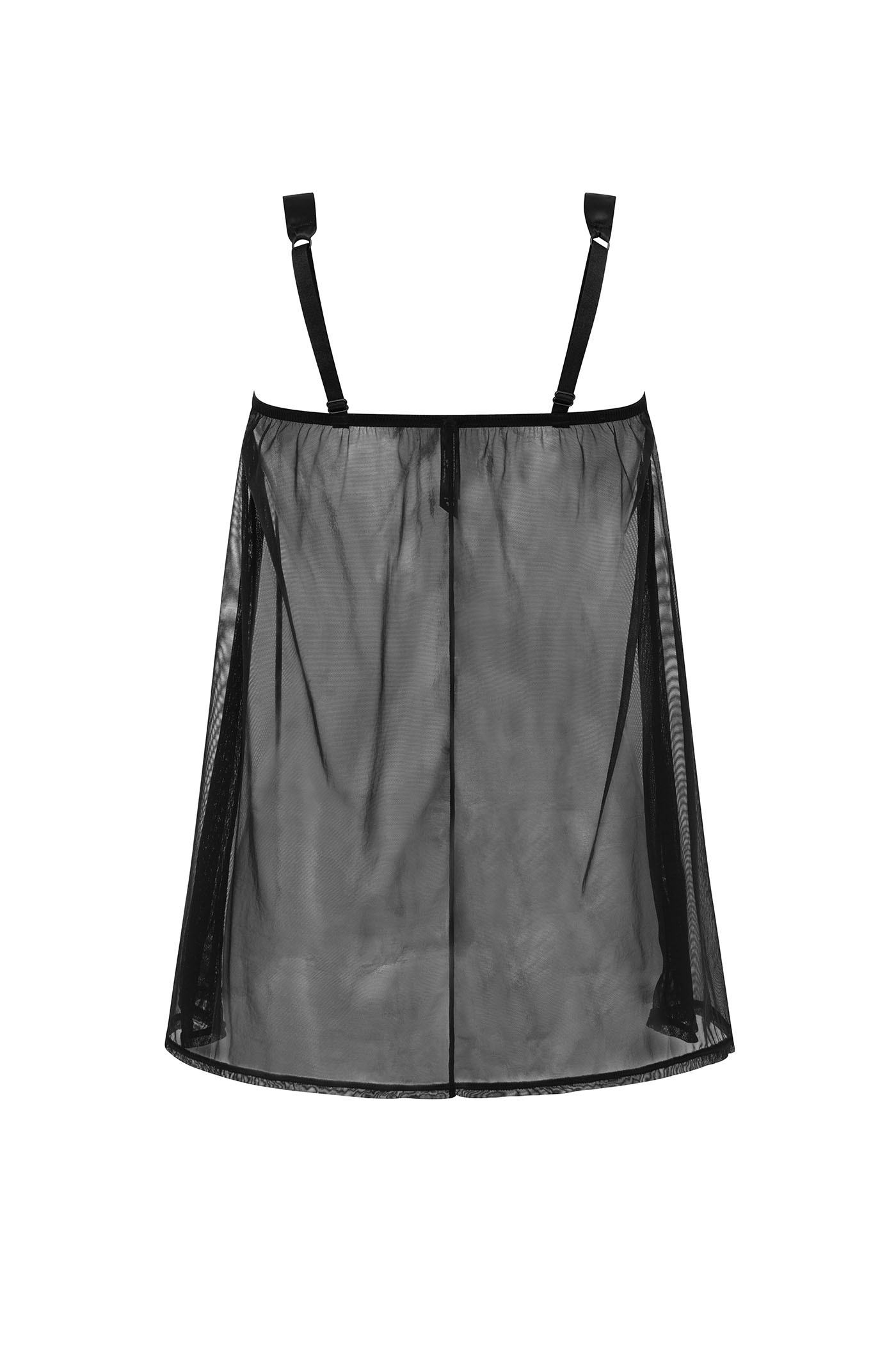 Bettina is a real pleasure for the eyes but also a caress for the skin, its transparent black chiffon cascading down to the top of your thighs revealing the beauty of your body!