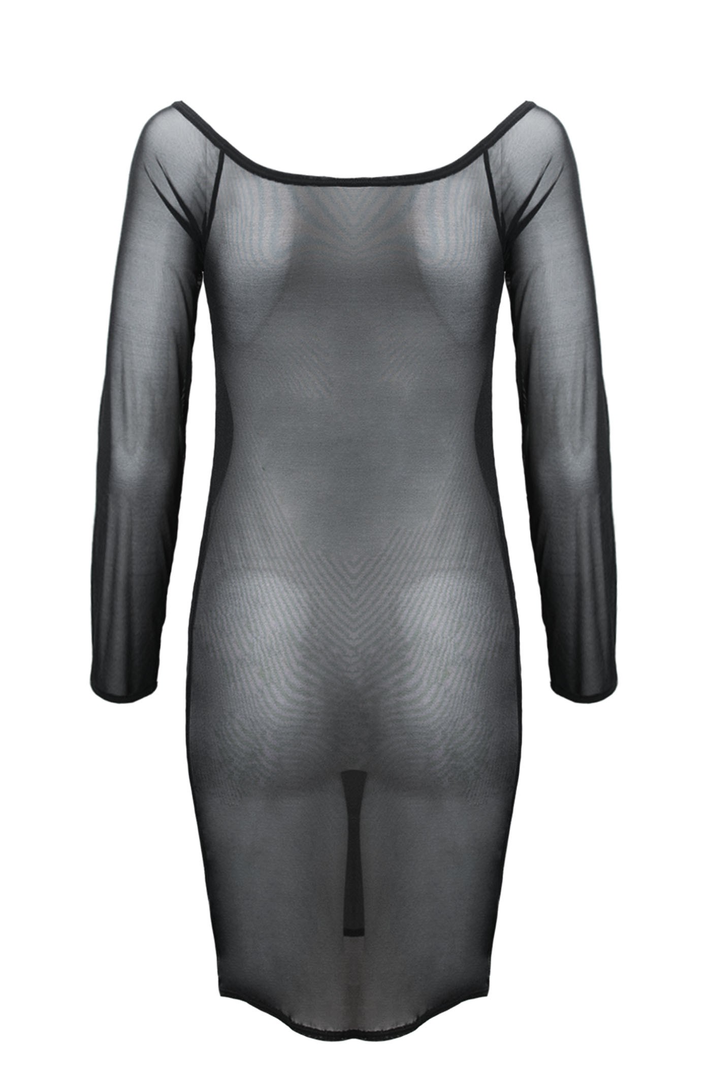 Materials: black stretch chiffon, golden medallion. • Dress: completely see-through Care instructions: hand wash separately in cold water. Do not tumble dry. Do not bleach.