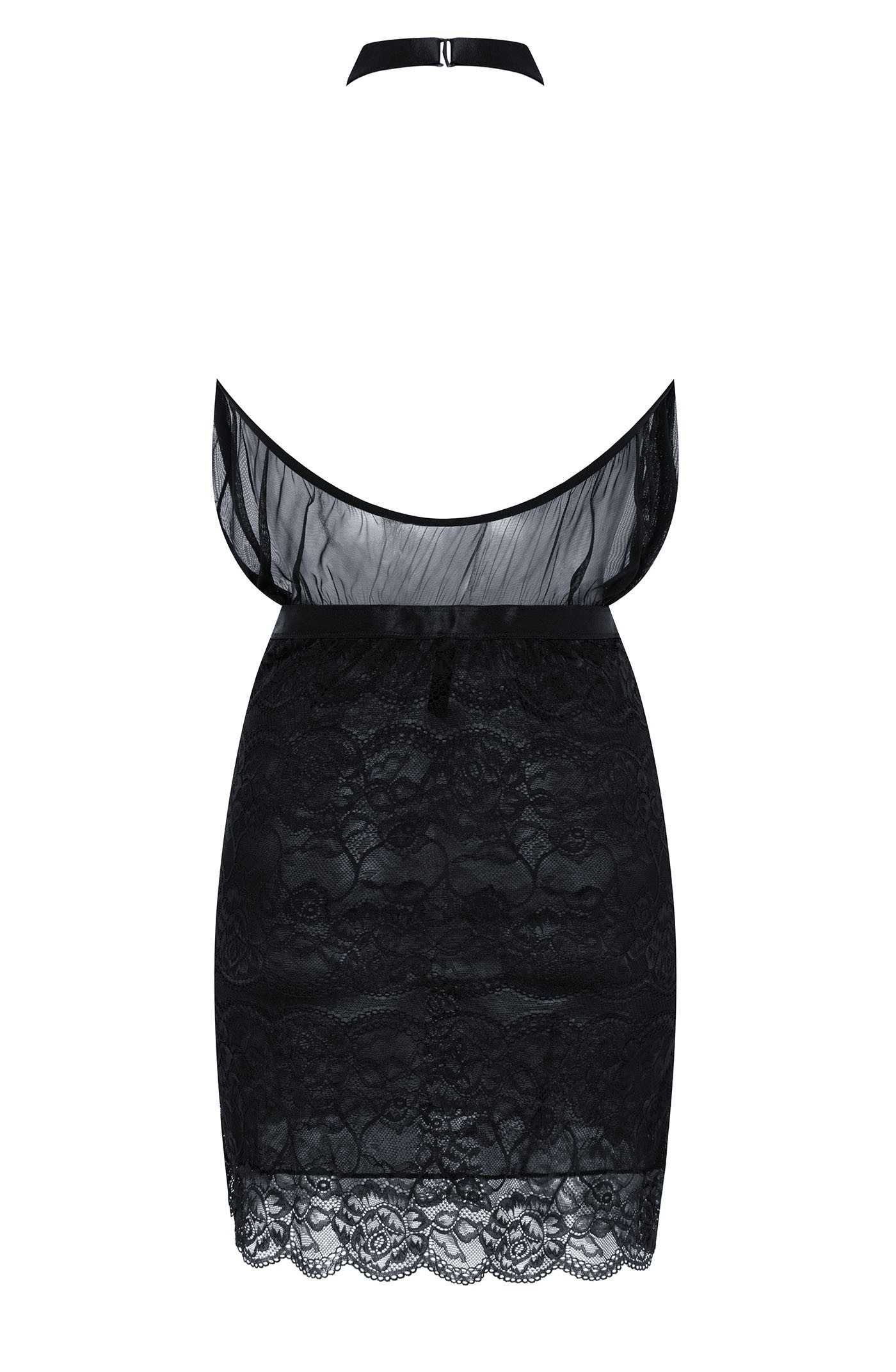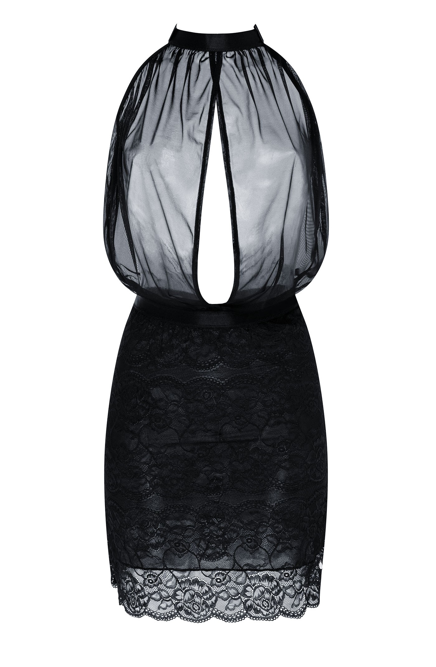 Lina can be worn as a dress for a chic evening or in the bedroom. Designed in transparent black lace, its stretch fabric guarantees optimal comfort.