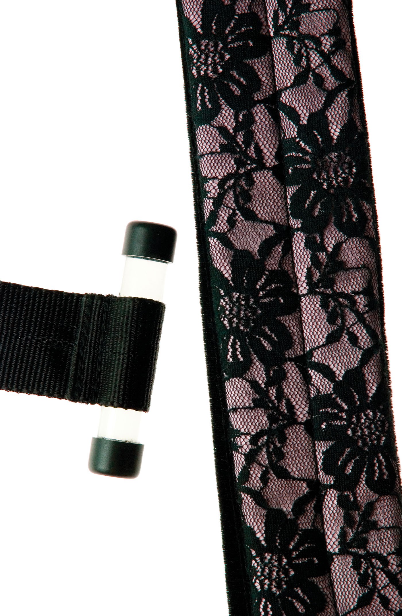 Adjustable. Delicate black lace and light pink satin straps. Lined with black velvet for absolute comfort. Make sure the door is locked and your swing is well-adjusted before use. Maximum weight supported: 85kg