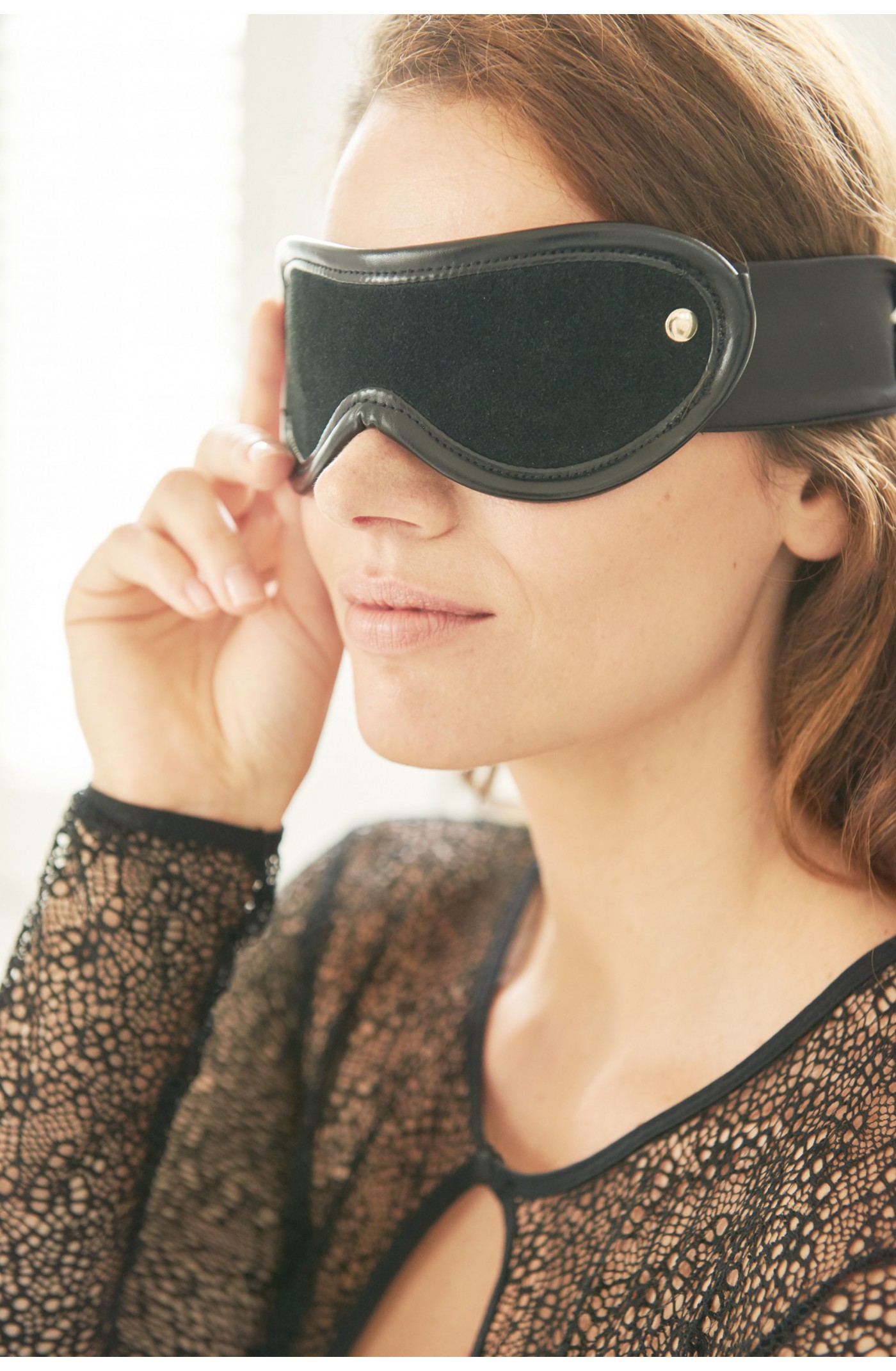 The perfect accessory to help you concentrate on nothing but pleasure. Lys is a black mask made of fine leather and suede, equipped with two stretch satin ribbons to firmly tie it around your head. Comfortable, effective and very flexible; it offers full coverage and the softness of its material makes it extremely cosy. Adorned with two flat golden studs and a golden medallion engraved with Soft Paris' logo.