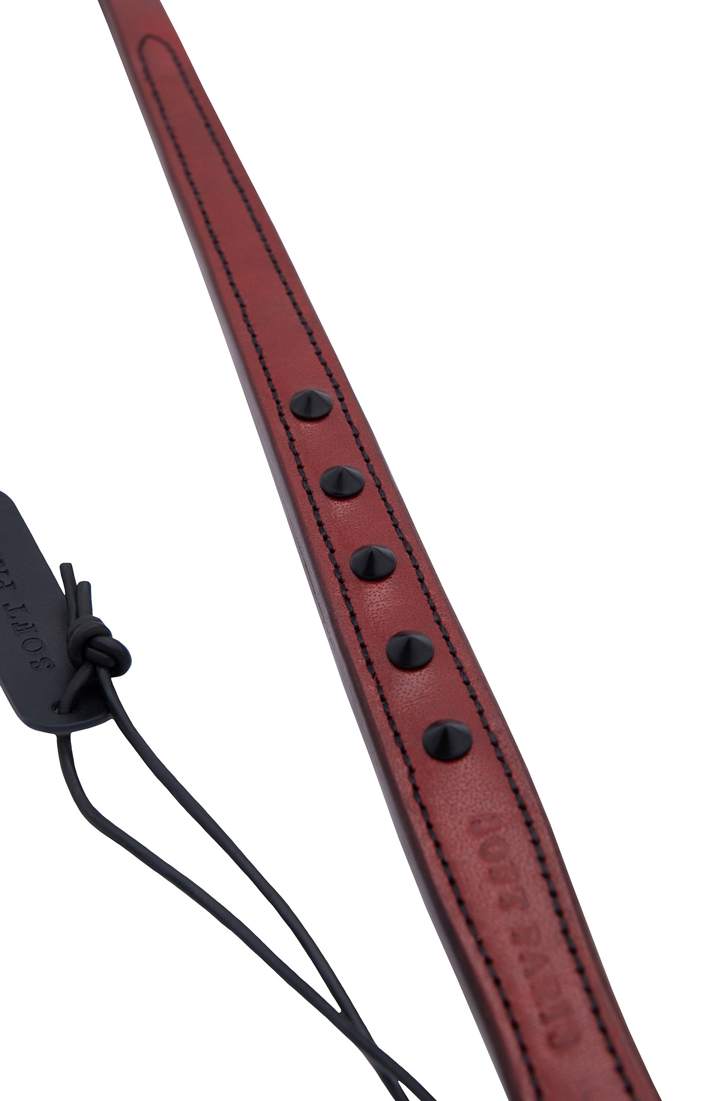 The paddle has two different ends to allow for a multitude of play. One end is thick and adorned with small black studs for increased impact and long-lasting marx. By contrast, the tip is split into two thin leather strips to allow flexibility of use, from teasing to lashing. Red being the colour of passion and the colour most associated with Marx’ philosophy, don’t restrain the force of your arm and allow the pleasure to rise up to the surface of their skin! On our pain scale (1-5), Marx is a level five: the perfect paddle for you if you want to take your pain play to the next level or if you are already a confirmed user.