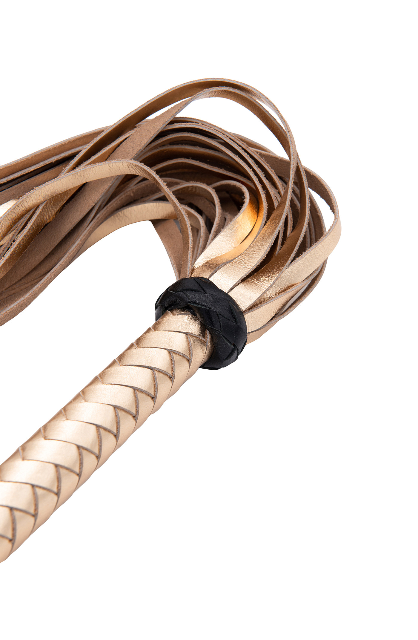 Bring style to the bedroom with this dazzling gold leather flogger.