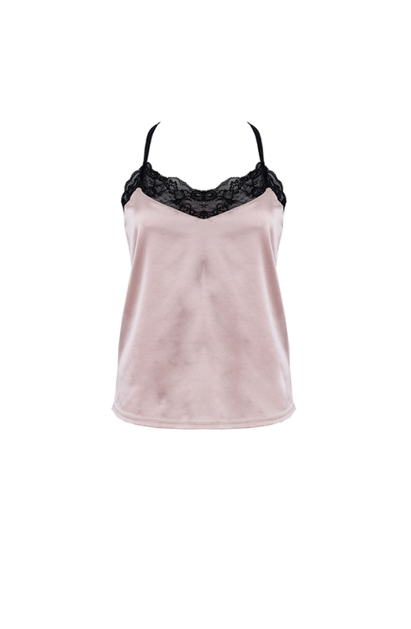 Top in elasticizzato in pizzo nero/rosa cipria. Istruzioni per il lavaggio: Lavare a mano separatamente in acqua fredda, Non usare l'asciugatrice, Non candeggiare